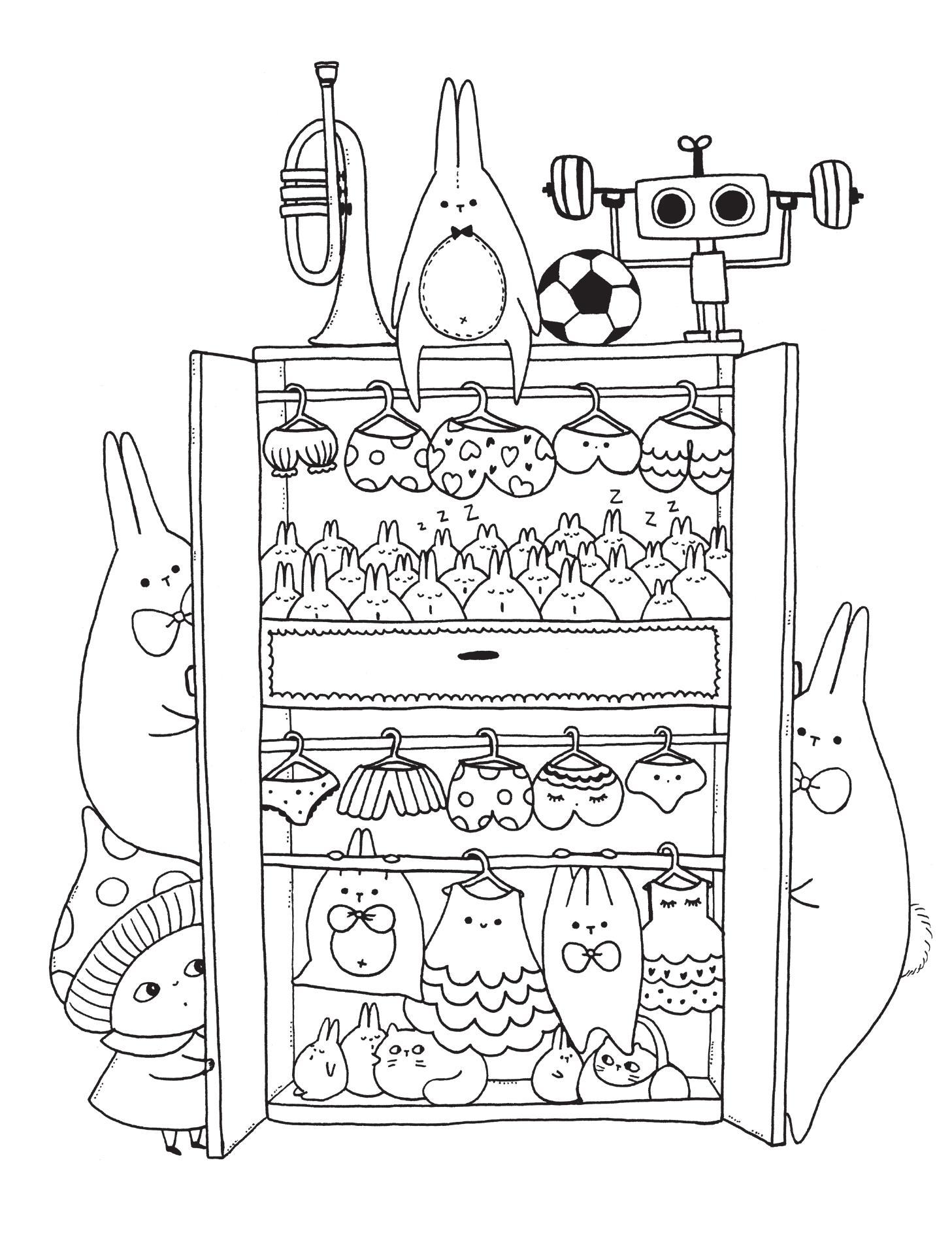 Mỗi trang sách đều được trang trí dày đặc các họa tiết và hoa văn xung quanh nhân vật chính, tạo nên thử thách tô màu chi tiết; đồng thời cũng để một khoảng trống lớn ở giữa để độc giả có thể vẽ thêm các nét, các hình theo trí tưởng tượng riêng.