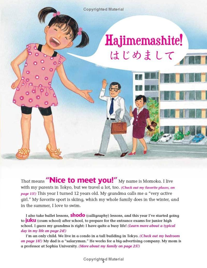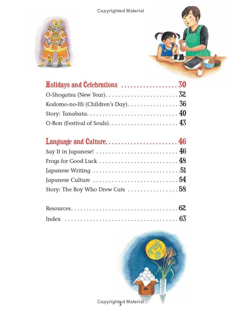 Two friends, a boy from the country and a girl from the city, take us on a tour of their beloved land through their eyes. They introduce us to their homes, families, favorite places, school life, holidays and more! Celebrate the cherry blossom festival Learn traditional Japanese songs and poems Make easy recipes like mochi (New Year's sweet rice cakes) and okonomiyaki (Japanese pizza or pancakes) Create origami frogs, samurai helmets and more!