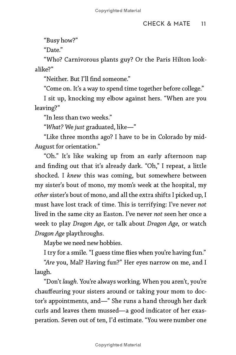 Mallory Greenleaf is done with chess. Every move counts nowadays; after the sport led to the destruction of her family four years earlier, Mallory’s focus is on her mom, her sisters, and the dead-end job that keeps the lights on. That is, until she begrudgingly agrees to play in one last charity tournament and inadvertently wipes the board with notorious “Kingkiller” Nolan Sawyer: current world champion and reigning Bad Boy of chess.