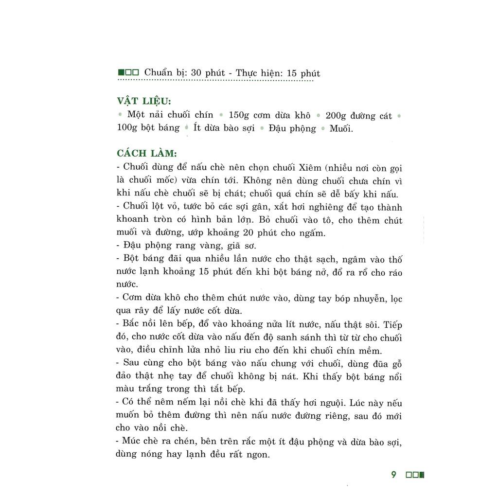 Ẩm thực Nam Bộ vốn được yêu thích bởi sự dân dã, nguyên liệu gần gũi dễ tìm nhưng hương vị thì tuyệt ngon. Cuốn sách hướng dẫn cách chế biến 62 món chè thơm ngon, thanh mát, giải nhiệt trong ngày hè: Thạch đậu đỏ, thanh long, trứng cút, nấm tuyết bí đỏ, sakê lá dứ Bạn hãy trổ tài vào bếp để chiêu đãi gia đình và những người thân yêu của mình nhé!
