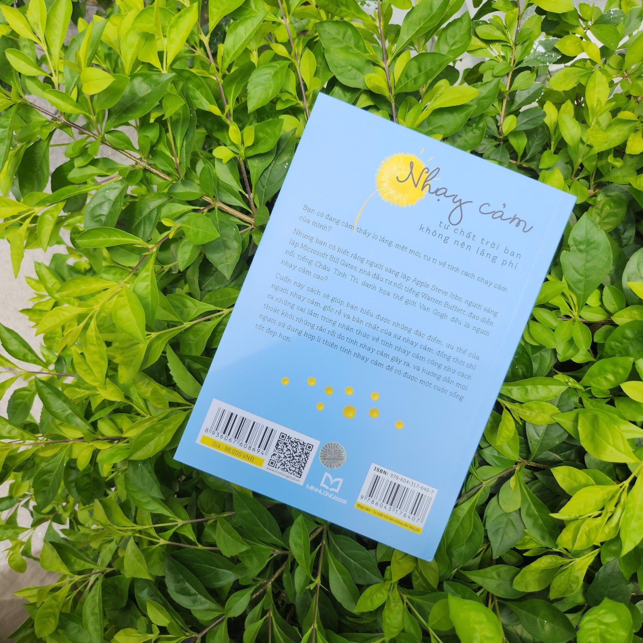Sách: Nhạy Cảm - Tư Chất Trời Ban Không Nên Lãng Phí Bạn có đang cảm thấy lo lắng, mệt mỏi, tự ti về tính cách nhạy cảm của mình. Nhưng bạn có biết rằng người sáng lập Apple Steve Jobs, người sáng lập Microsoft Bill Gates, nhà đầu tư nổi tiếng Warren Bufer, đạo diễn nổi tiếng Châu Tinh Trì, danh họa thế giới Van Gogh đều là người nhạy cảm hay không?   Nhạy cảm là tư chất trời ban, không phải khiếm khuyết   Giá trị của cuộc đời chính là được trải nghiệm cuộc sống sâu rộng hơn, cuộc đời như vậy mới thực sự rực rỡ sắc màu, viên mãn và không hối tiếc. Nhạy cảm là khả năng đạt được trải nghiệm phong phú này, cho nên nhạy cảm không những không phải là khuyết điểm, mà còn là ưu thế, một tư chất thiên bẩm khác biệt với số đông, có thể nói là món quà đặc biệt mà ông trời ban tặng cho chúng ta. Có thể thấy, dù là thân thể nhạy cảm hay tâm lý nhạy cảm đều rất đáng quý, nhưng phản ứng cảm xúc mãnh liệt của người nhạy cảm thường bị hiểu lầm là nhược điểm. Nhưng tính nhạy cảm có ưu điểm rất phong phú, bao phủ mọi phương diện trong cuộc sống và công việc.   Biết vận dụng khả năng nhạy cảm vào các phương diện của đời sống có thể mang lại hiệu quả bất ngờ   Tuy chúng ta không thể cải tạo sự nhạy cảm từ gốc rễ, nhưng chúng ta có thể sẫn dắt và hoàn thiện nó.Tính cách nhạy cảm và tính cách hướng nội giống nhau, đều có sức mạnh nội tại, đều có ưu điểm và khuyết điểm riêng của chúng, mấu chốt là chúng ta điều khiển chúng như thế nào để đạt được hiệu quả trong cuộc sống của mình.