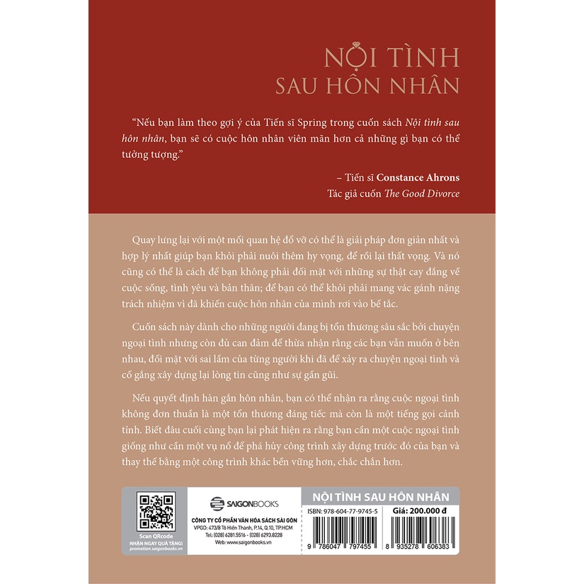 Cuốn sách này sẽ đem lại cái nhìn sâu sắc về lý do dẫn đến chuyện ngoại tình, ảnh hưởng của ngoại tình đến cả hai người trong hôn nhân, dù là người bị tổn thương hay người không chung thủy.