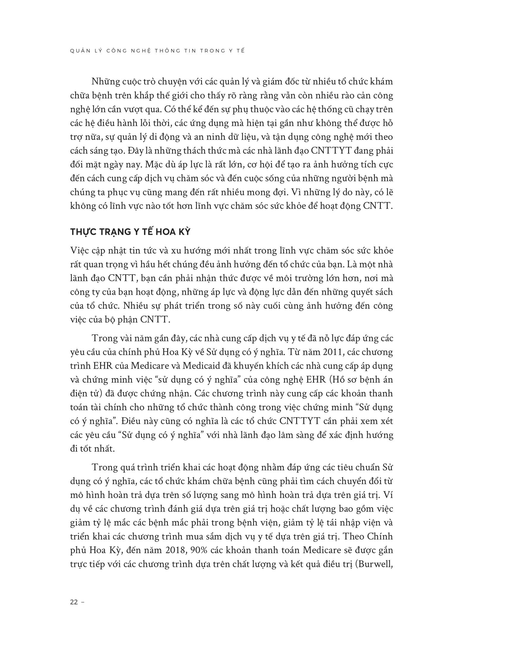 Mua tại TiktokQuản Lý Công Nghệ Thông Tin Trong Y Tế - Chiến Lược, Tầm Nhìn Và Kỹ Năng Trong bối cảnh y tế ngày càng số hóa, công nghệ thông tin y tế (CNTTYT) giữ vai trò trung tâm của hệ thống vận hành. Cuốn sách này là một cẩm nang thực hành cho lãnh đạo CNTT trong ngành y, tập trung không chỉ vào công nghệ mà còn vào kỹ năng lãnh đạo, quản trị và định hướng chiến lược. Tác phẩm bao quát từ nền tảng (chiến lược, quản trị CNTT, tạo giá trị, tiếp thị CNTT y tế) đến các chủ đề nâng cao (quản lý rủi ro, lãnh đạo, Lean IT, đổi mới, y tế số). Đây không chỉ là lý thuyết mà còn cung cấp các khung thực hành, công cụ, kỹ thuật, và case study thực tế để giúp nhà quản lý y tế và CNTT: