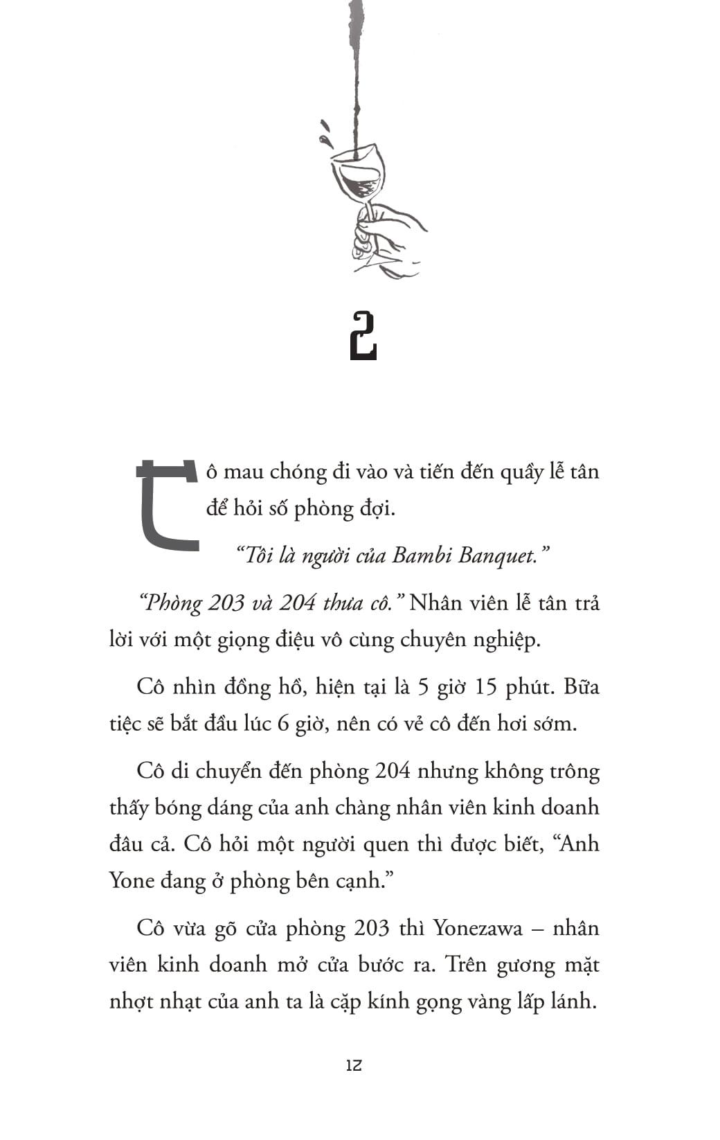 Makimura Eri, một nữ phục vụ đang làm việc dưới sự quản lý của công ty phục vụ tiệc Bambi Banquet, được phát hiện đã tử vong tại Phòng 203 của khách sạn Ginza Queen. Chính Marumoto Hisao, giám đốc điều hành của Bambi, là người đã tìm thấy thi thể của Eri.