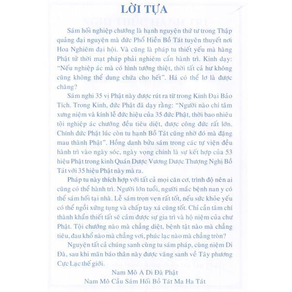 Mua tại TiktokSám nghi 35 vị phật này được rút ra từ trong KINH ĐẠI BẢO TÍCH. Trong Kinh, đức Phật đã dậy rằng: Người nào chí tâm xưng niệm và kính lễ đức hiệu của 35 đức phật, thời bao nhiêu tội nghiệp ác chướng đều tiêu diệt, được công đức lớn.