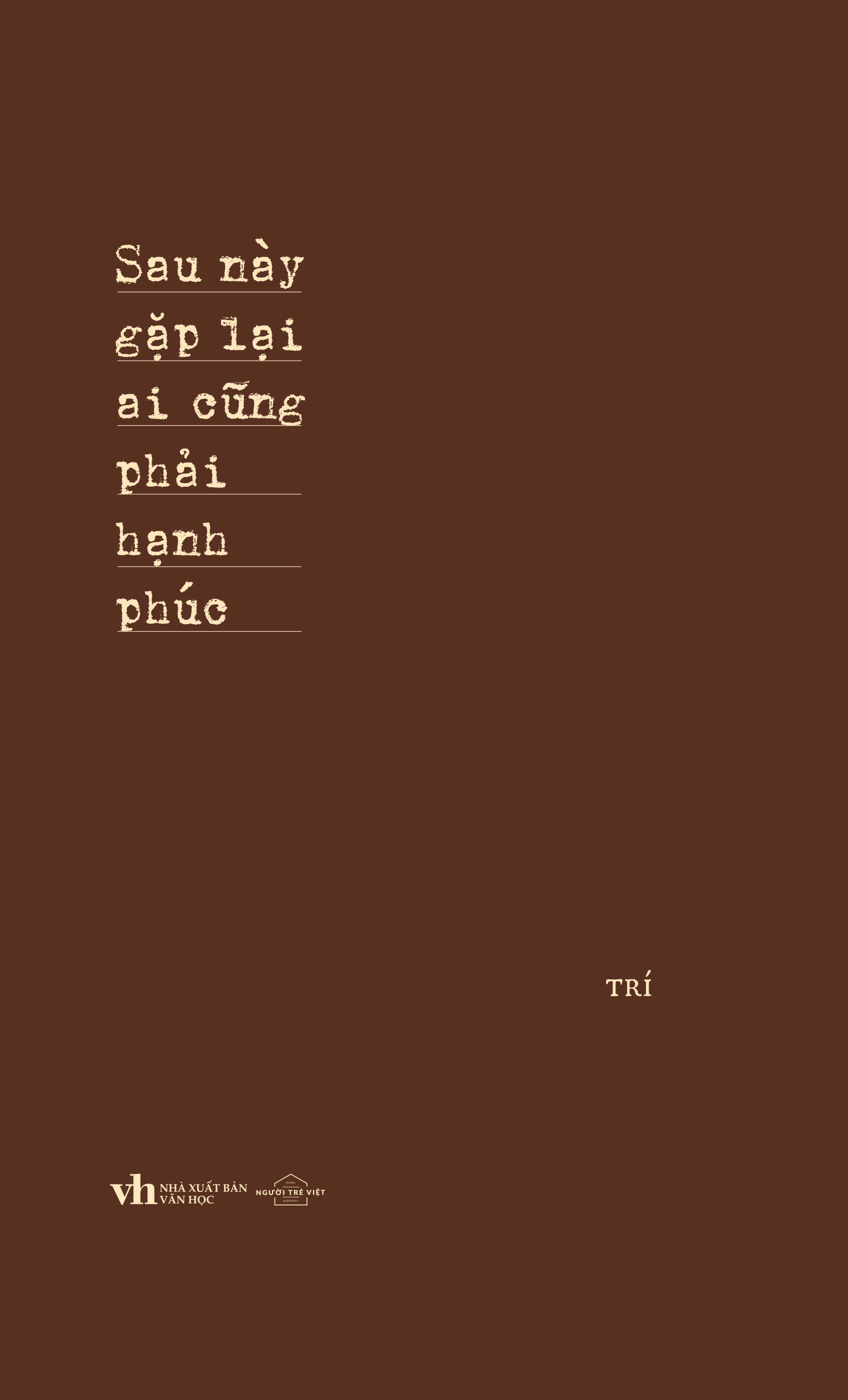 “Sau này gặp lại ai cũng phải hạnh phúc” sẽ là một người tâm giao, là một lời động viên, là một sự an ủi mà Trí muốn gửi đến bạn trong những ngày chênh vênh. Những ngày mà bạn cảm thấy trống rỗng chẳng có ai cạnh bên, hãy lật từng trang sách, đọc từng tâm tư mà tác giả gửi gắm. Từng câu chữ như lời thủ thỉ, đưa bạn về những ngày đã qua, những nỗi đau tưởng chừng đã quên, và rồi nhẹ nhàng vỗ về, nhắc nhở rằng: dù cuộc sống có ra sao, chúng ta vẫn xứng đáng được hạnh phúc.