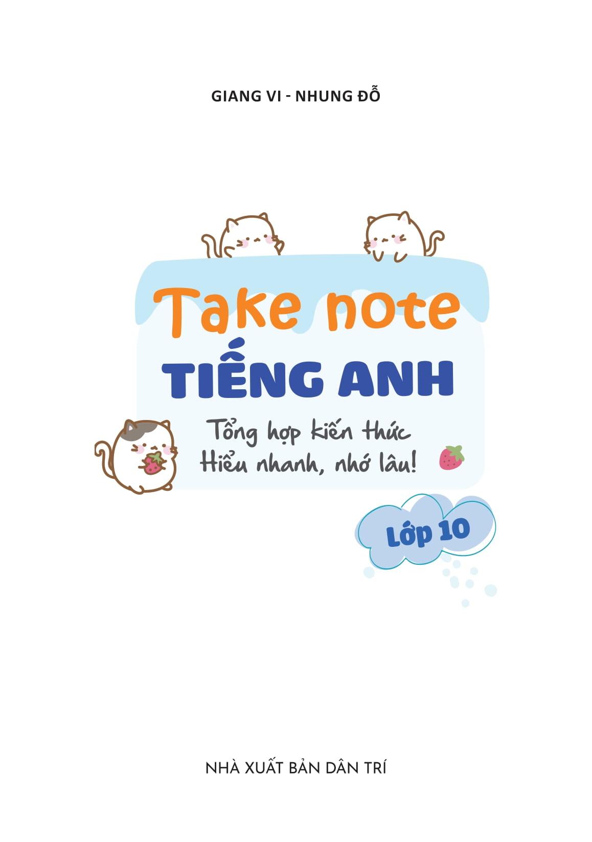 Take Note Tiếng Anh Lớp 10 là cuốn sách được thiết kế đặc biệt dành cho học sinh lớp 10 đang học bộ sách giáo khoa Global Success, nhằm hỗ trợ các bạn trong quá trình học và ôn tập môn tiếng Anh – một trong những môn học được đánh giá là nhiều thử thách, đặc biệt khi chuẩn bị cho kỳ thi THPT Quốc gia.