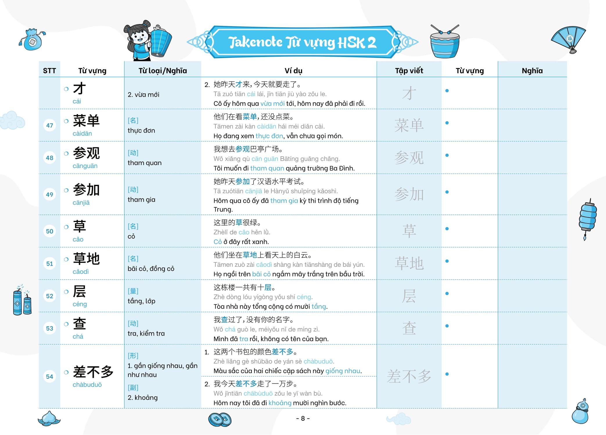 Takenote - Từ Vựng HSK Tiếng Trung - HSK2 (Cung Cấp 772 Từ Vựng)
