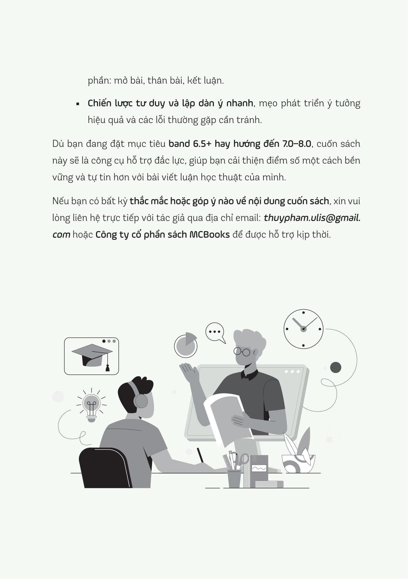 Trên đây là những nội dung nổi bật của cuốn sách mà chúng tôi muốn gửi đến quý bạn đọc – những người đang nỗ lực từng ngày trên hành trình chinh phục IELTS Writing Task 2. Hy vọng cuốn sách sẽ là người bạn đồng hành đáng tin cậy, giúp bạn từng bước làm chủ kỹ năng viết luận học thuật và đạt được mục tiêu điểm số mong muốn.