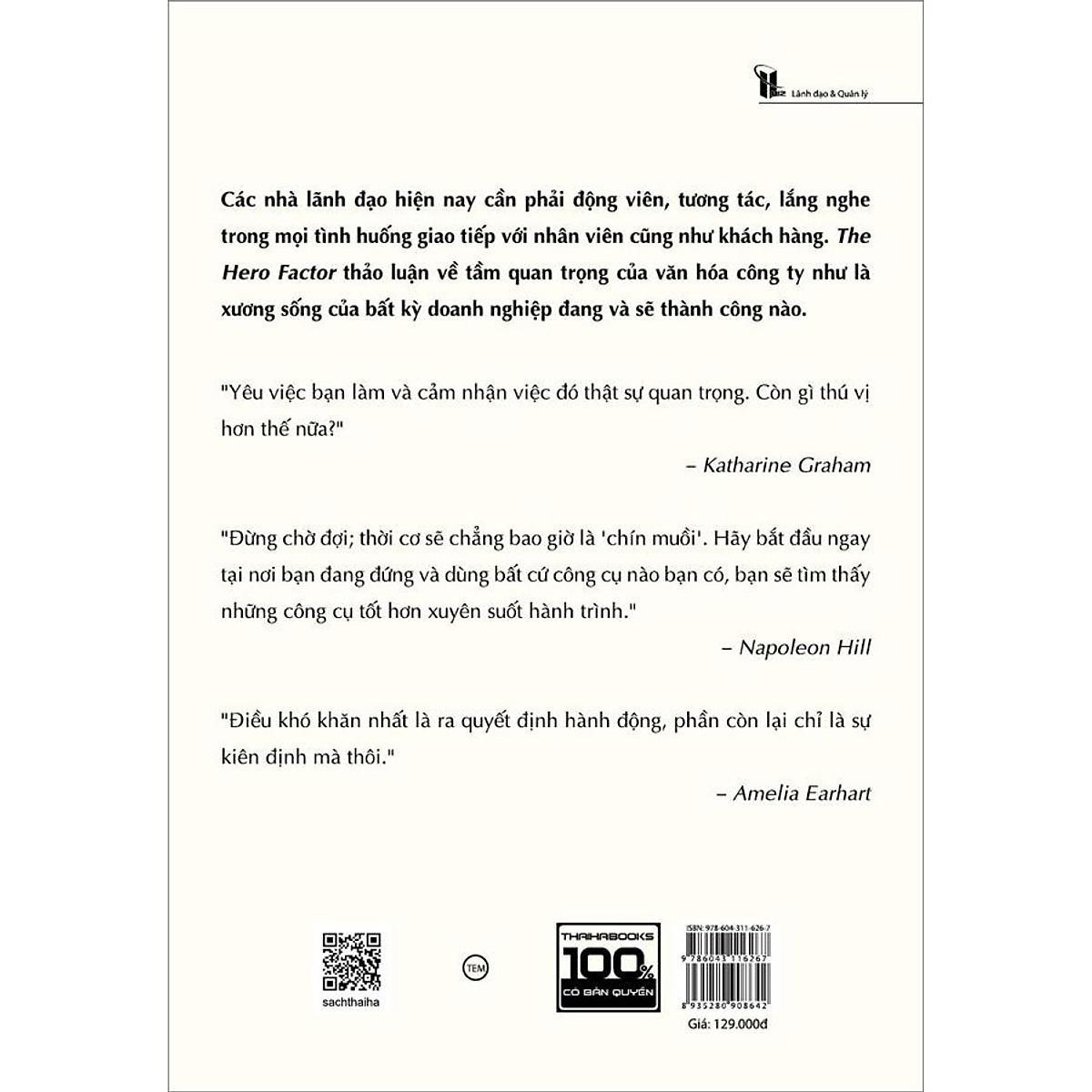 Các nhà lãnh đạo hiện nay cần phải động viên, tương tác, lắng nghe và trong mọi tình huống giao tiếp với nhân viên cũng như khách hàng. The Hero Factor thảo luận về tầm quan trọng của văn hóa công ty như là xương sống của bất kỳ doanh nghiệp đang và sẽ thành công nào. Các công ty có khả năng lãnh đạo nhưng lại bác bỏ tầm quan trọng của tính minh bạch sẽ có nhiều khả năng bị kêu gọi vì không tuân theo các tuyên bố về sứ mệnh và mục tiêu trên trang chính thức của họ.
