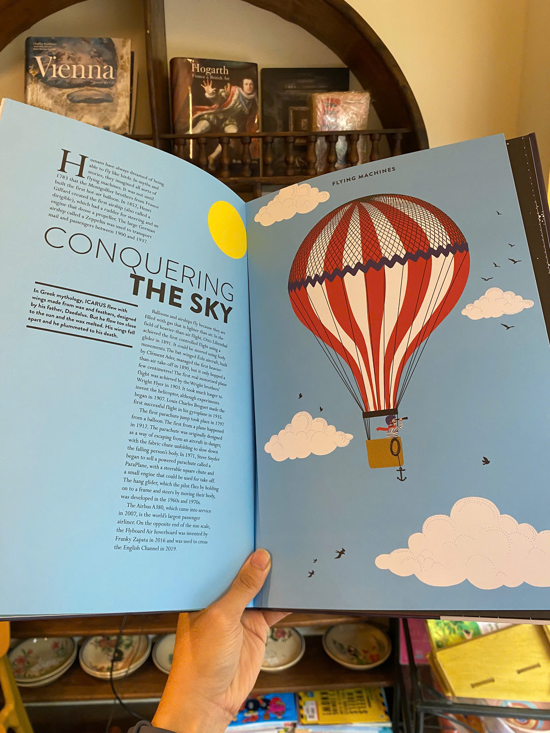 Cuốn sách khổ lớn tuyệt đẹp này chứa đầy những hình cắt ghép khéo léo, đưa người đọc vào một hành trình bay vút lên cao, bay xa, xuyên qua những đám mây, xuyên qua bầu khí quyển, đến các hành tinh, các vì sao và xa hơn nữa. Trên đường đi, các em sẽ được tìm hiểu về chim chóc, côn trùng và sự thụ phấn, chứng kiến lốc xoáy và nhật thực, và chiêm ngưỡng đủ loại máy bay. Hành trình đầy ắp thông tin này được viết bởi Hélène Druvert, tác giả nổi tiếng của nhiều cuốn sách cắt laser dành cho trẻ em.