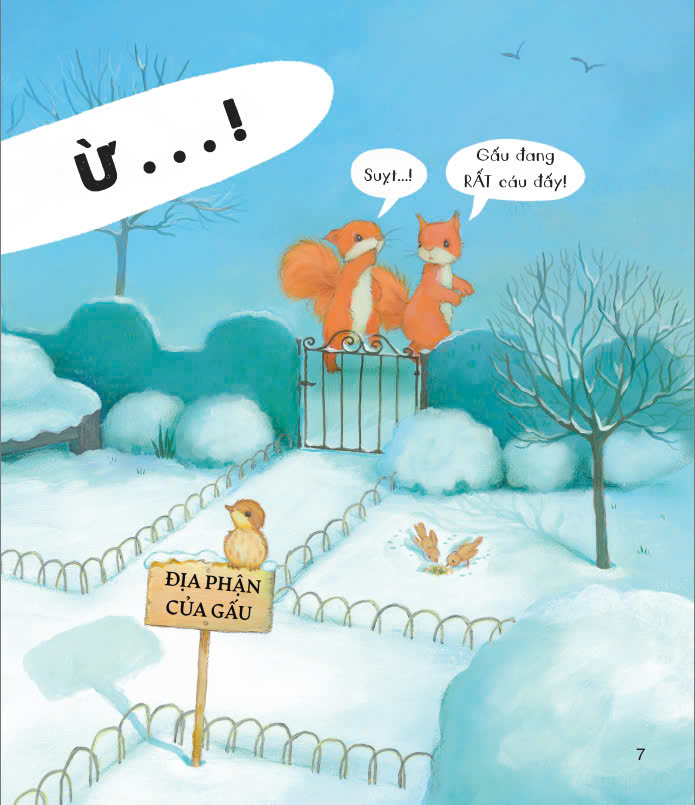 xù lông, cộng thêm vẻ mặt luôn nhăn nhó. Phải làm gì để khiến Gấu nở nụ cười đây? Hay là thử đắp cho cậu ấy CHÚ THỎ TUYẾT xem sao. Và biết đâu... một NGƯỜI BẠN có thể giúp được GẤU nhỉ?