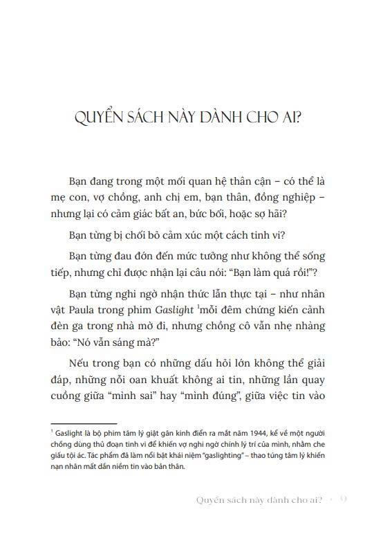 Nếu bạn từng cảm thấy bị tổn thương mà không hiểu vì sao, từng bị phủ nhận cảm xúc, từng sống trong hoang mang giữa đúng – sai, hoặc từng nghi ngờ chính m.ình trong một mối quan hệ tưởng là thân thiết, thì cuốn sách này dành cho bạn.