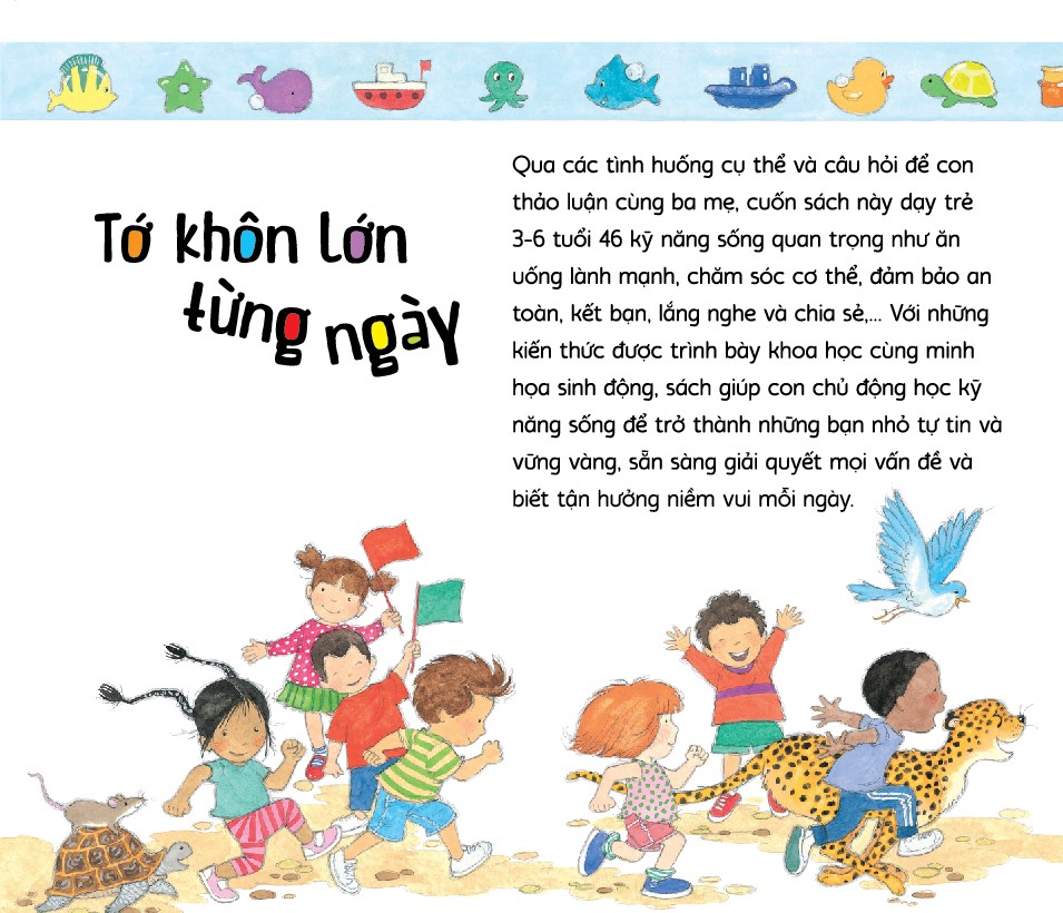 Qua các tình huống cụ thể và câu hỏi để con thảo luận cùng ba mẹ, cuốn sách này dạy trẻ 3-6 tuổi 46 kỹ năng sống quan trọng như ăn uống lành mạnh, chăm sóc cơ thể, đảm bảo an toàn, kết bạn, lắng nghe và chia sẻ,… Với những kiến thức được trình bày khoa học cùng minh họa sinh động, sách giúp con chủ động học kỹ năng sống để trở thành những bạn nhỏ tự tin và vững vàng, sẵn sàng giải quyết mọi vấn đề và biết tận hưởng niềm vui mỗi ngày.