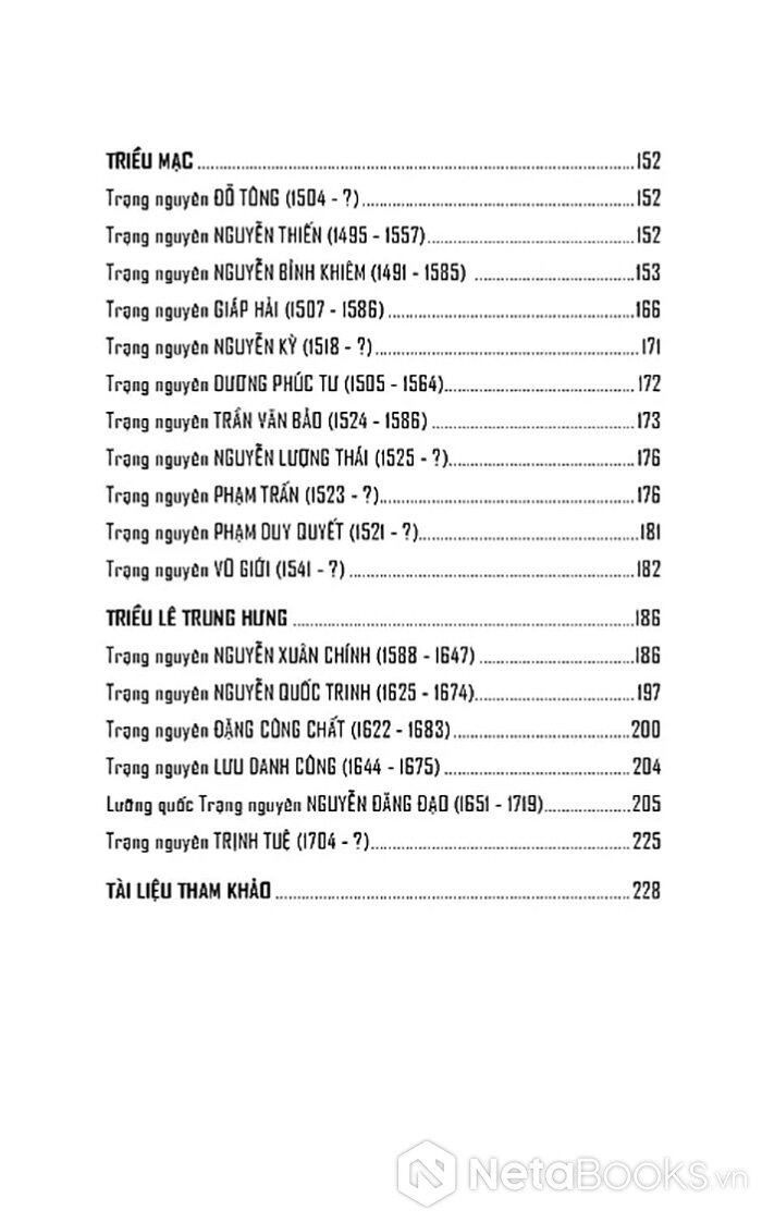 Mua tại TiktokTác giả: Nhiều tác giả Ngôn ngữ: tiếng Việt Số trang: 232 Năm xuất bản: 2024 Nhà xuất bản: Hà Nội Kích thước: 13 x 20 m Hình thức: bìa mềm Cuốn sách Trạng nguyên Việt Nam đem đến cho bạn đọc câu chuyện về những học trò nghèo nỗ lực học hành để đổ đạt như Trạng nguyên Nguyễn Nghiêu Tư, Nguyễn Trực,... Chuyện về Trạng nguyên Nguyễn Hiền tiêu biểu cho những người trẻ tuổi trong lịch sử Việt Nam có tài cao, danh vọng lớn, đổ trạng ở tuổi 13. Chuyện về thiên tài toán học Lương Thế Vinh với Khải minh toán học và Đại thành toán pháp; Trạng nguyên Trần Tất Văn viết văn đuổi được giặc; Trạng nguyên Nguyễn Bỉnh Khiêm với những giai thoại sấm Trạng Trình...