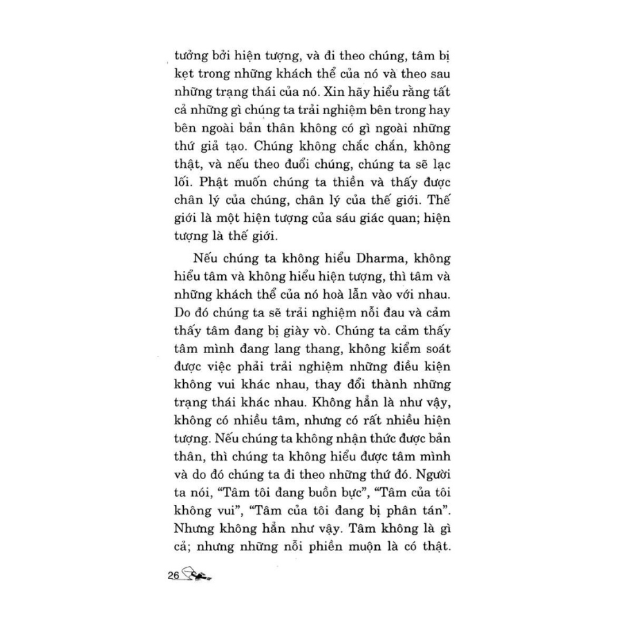 Do vậy, Đức Phật dạy chúng ta không nắm giữ bất cứ điều gì. Nếu giác ngộ, chúng ta sẽ có được sự yên bình. Yên bình đến từ sự buông bỏ, buông bỏ đến từ sự thông tuệ, và thông tuệ đến từ giác ngộ chân lý vô thường và vô ngã, khi chúng ta trải nghiệm và nhận ra chân lý này trong cuộc đời.
