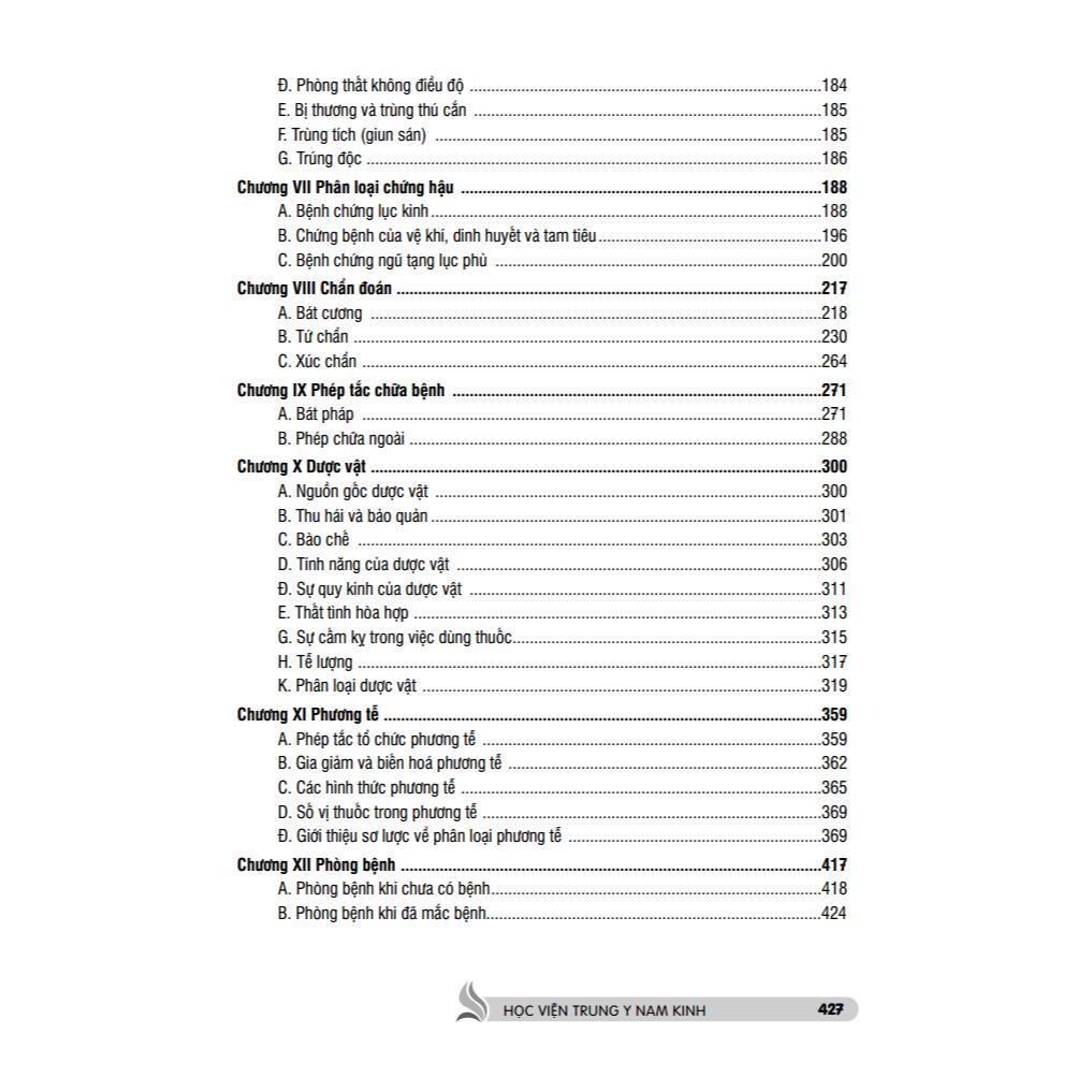 Sách này ngoài nội dung đã nói ở tập trên ra, tập hạ lại dựa vào những điều khái niệm về: nội khoa, châm cứu khoa, phụ khoa, nhi khoa, ngoại khoa, thương khoa, nhãn khoa, hầu khoa, khí công, thoa bóp và hộ lý. Trong đó lấy nội khoa và châm cứu làm trọng điểm. Nói tóm lại, tập trên là lý luận cơ bản, tập dưới là kiến thức về lâm sàng của Trung y.