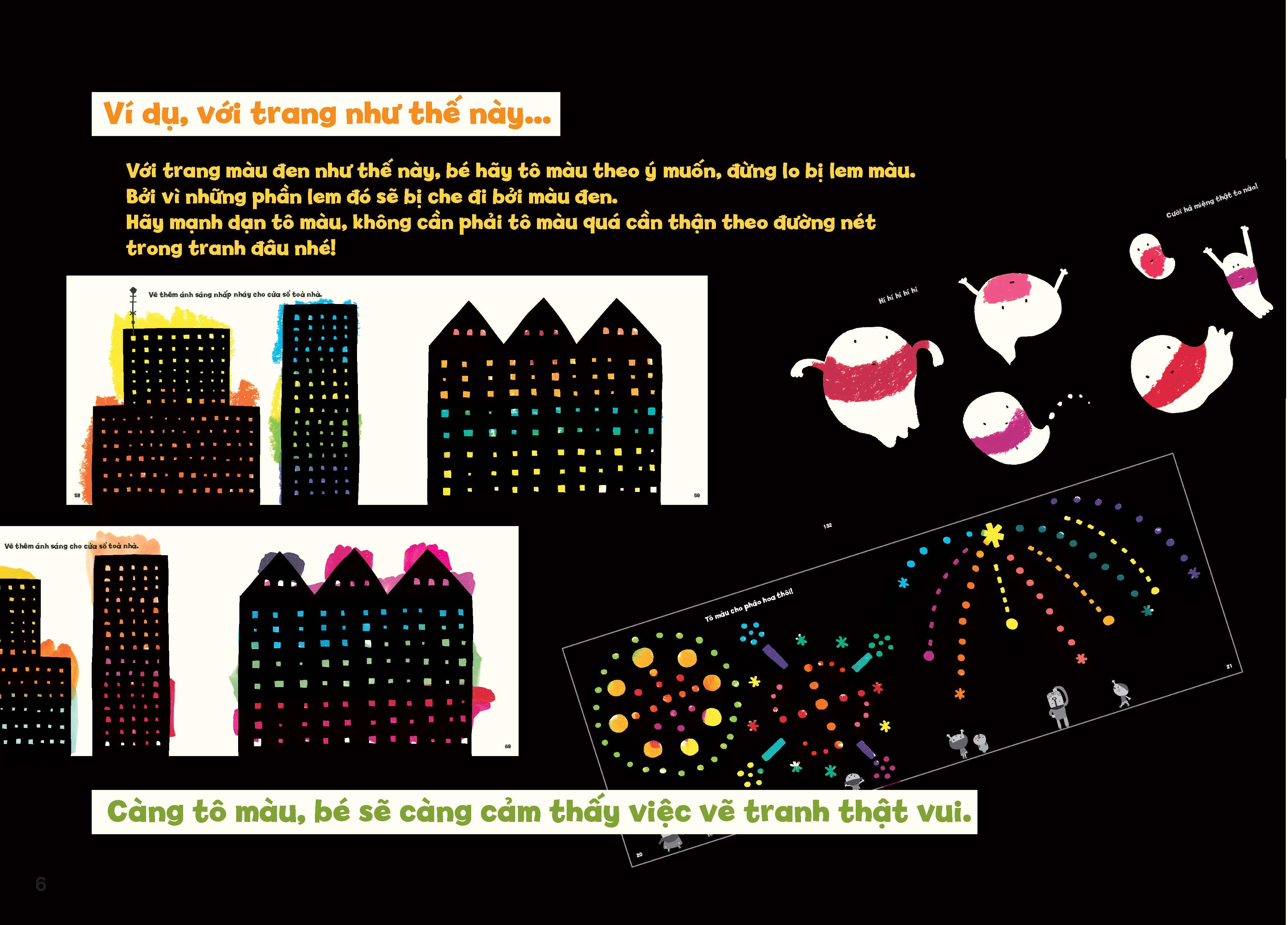 Càng tô càng vui: Để đáp ứng nhu cầu của độc giả muốn được “tô màu nhiều hơn” và “vẽ nhiều hơn”, chúng tôi đã tạo ra một cuốn sách có số trang nhiều gấp đôi so với lần trước. Cuốn sách tô màu này sẽ tạo sân chơi cho bé thoải mái vui chơi và phát triển cảm giác về màu sắc, trí tưởng tượng và khả năng sáng tạo của m.ình.