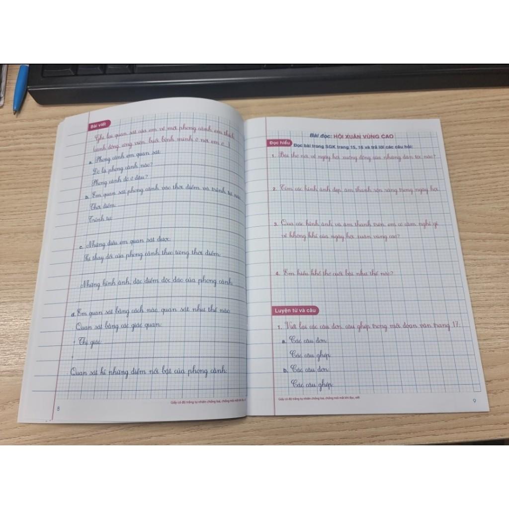 Với 2 bài học, mỗi tuần gồm các câu hỏi và bài tập được trình bày trên giấy ô li bằng kiểu chữ tiểu học hiện hành sẽ giúp các em vừa rèn được kĩ năng trả lời câu hỏi vừa rèn viết chữ được sạch, đẹp, trình bày rõ ràng.