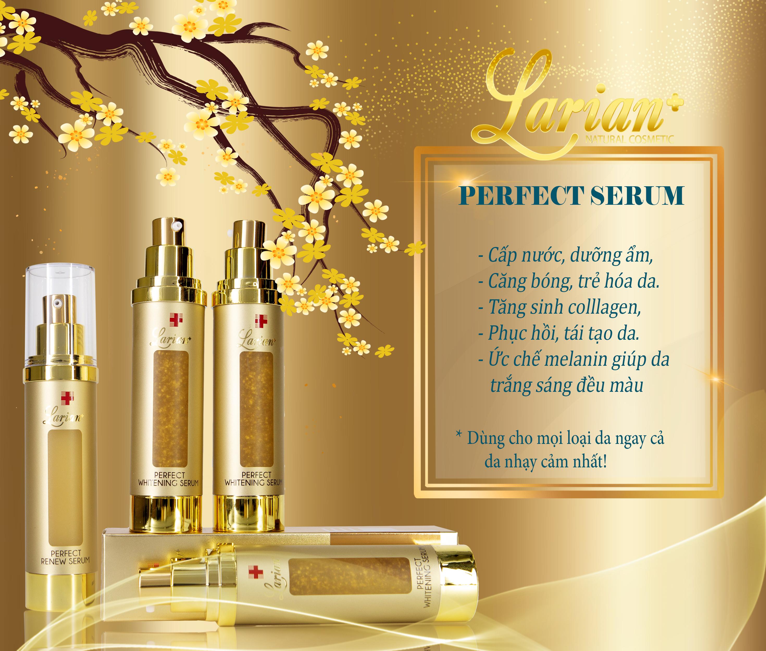Để sở hữu làn da căng mịn, tươi sáng, Dược mỹ phẩm spa gợi ý cho các chị em một “tuyệt phẩm” của Larian+ Tinh chất dưỡng ẩm, cấp nước cho làn da của nàng – serum PERFECT RENEW. Với các thành phần Collagen, phục hồi. Tinh chất PDRN, Squalane, Hyaluronic acid, Axit hyaluronic và shea butter … tế bào cấp ẩm cho làn da có nhiều công dụng, hiệu quả cho mọi tình trạng da, ngay cả da nhạy cảm và da dầu. Perfect Renew Larian+ được công bố bởi Bộ An toàn thực phẩm và dược phẩm Hàn Quốc chứa Adenosine có chức năng cải thiện nếp và DNA cá hồi có khả năng tái sinh làn da.