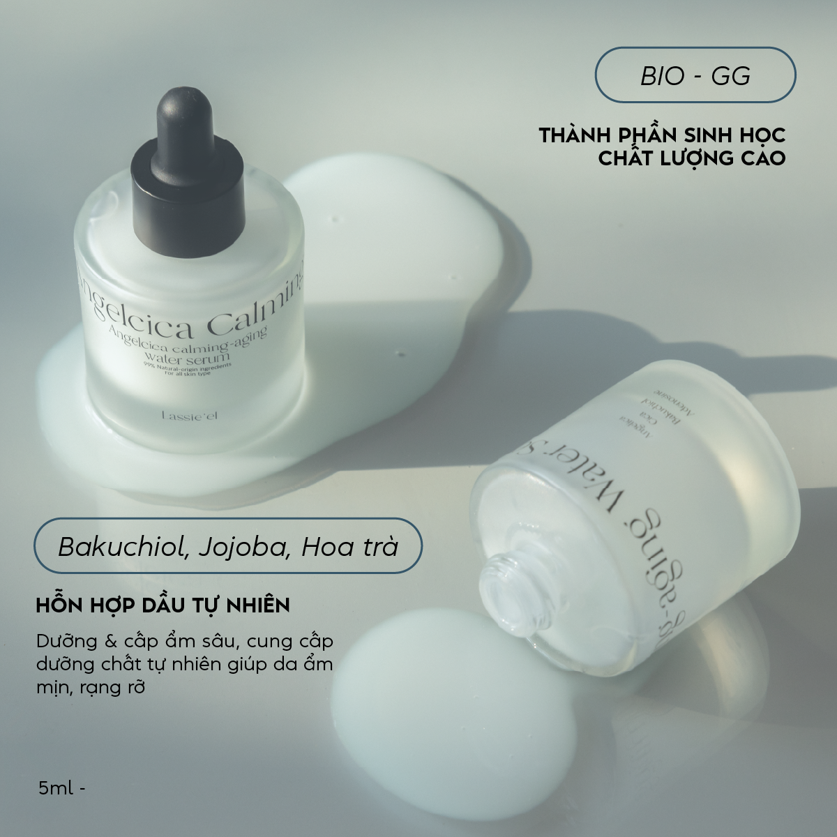 Serum Lassie'el là một phức hợp dưỡng chất cấp ẩm sâu, ngăn ngừa lão hóa, phục hồi, hỗ trợ dưỡng trắng giảm mụn và làm dịu da với sức mạnh của Angelica Keiskei. Nhờ thành phần giàu dưỡng chất, serum Lassie'el đem lại cho bạn một làn da căn bóng ẩm mịn, tăng độ đàn hồi da. Sản phẩm đã hoàn thành 9 loại kiểm nghiệm lâm sàng chứng nhận công dụng sau 4 tuần sử dụng