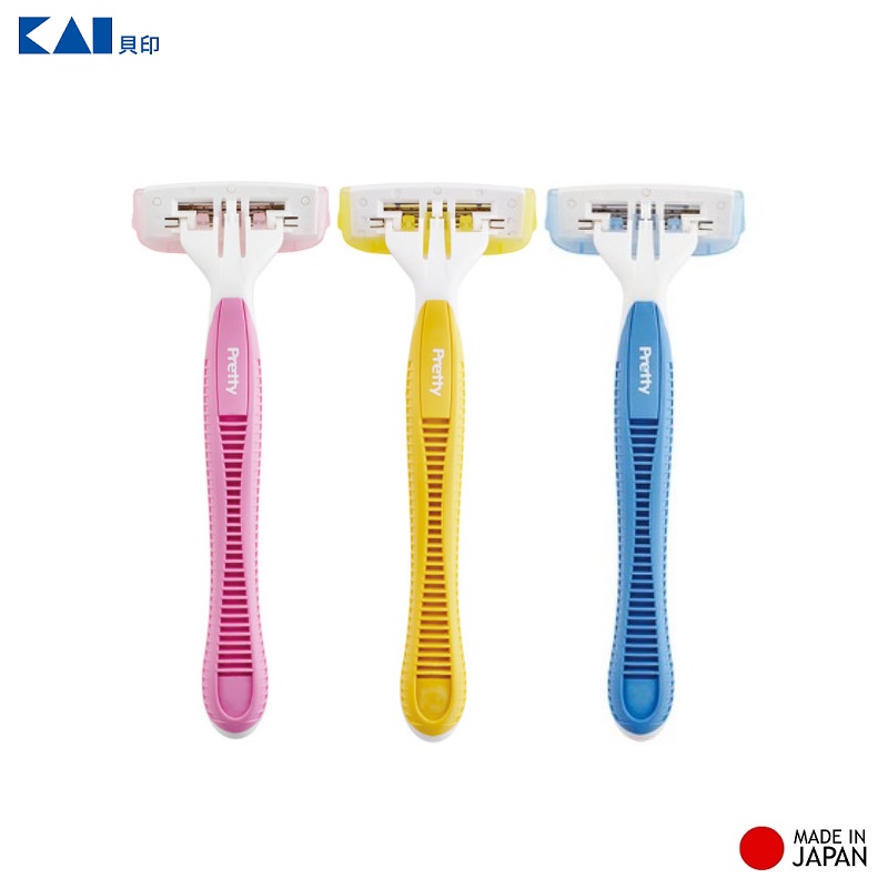 Set 03 chiếc dao cạo Kai Pretty Body, thiết kế 3 lưỡi kép tạo ra những đường cắt nhanh và hiệu quả hơn - nội địa Nhật Bản Chất liệu: Lưỡi bằng thép không