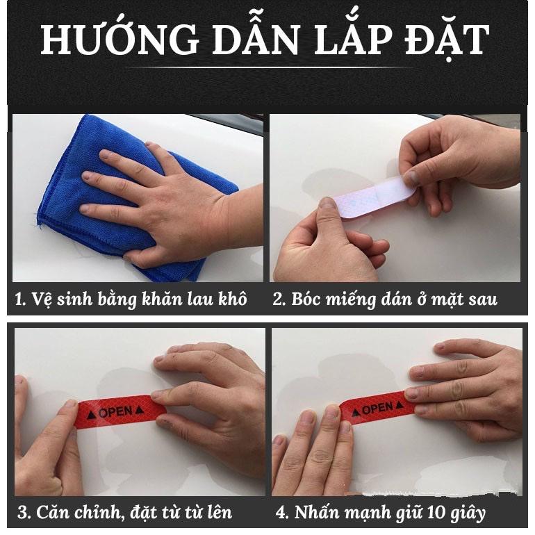 Mô tả sản phẩm Bộ 4 miếng dán chống xước tay cửa xe ô tô 206239 - Bộ 4 miếng dán bảo vệ tay nắm cửa ô tô là phụ kiện ô tô tiện ích