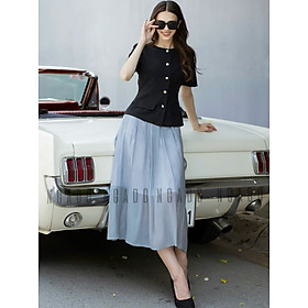 ✨Set áo váy đen chân váy tơ xám NGADO , set áo váy dài , set công sở