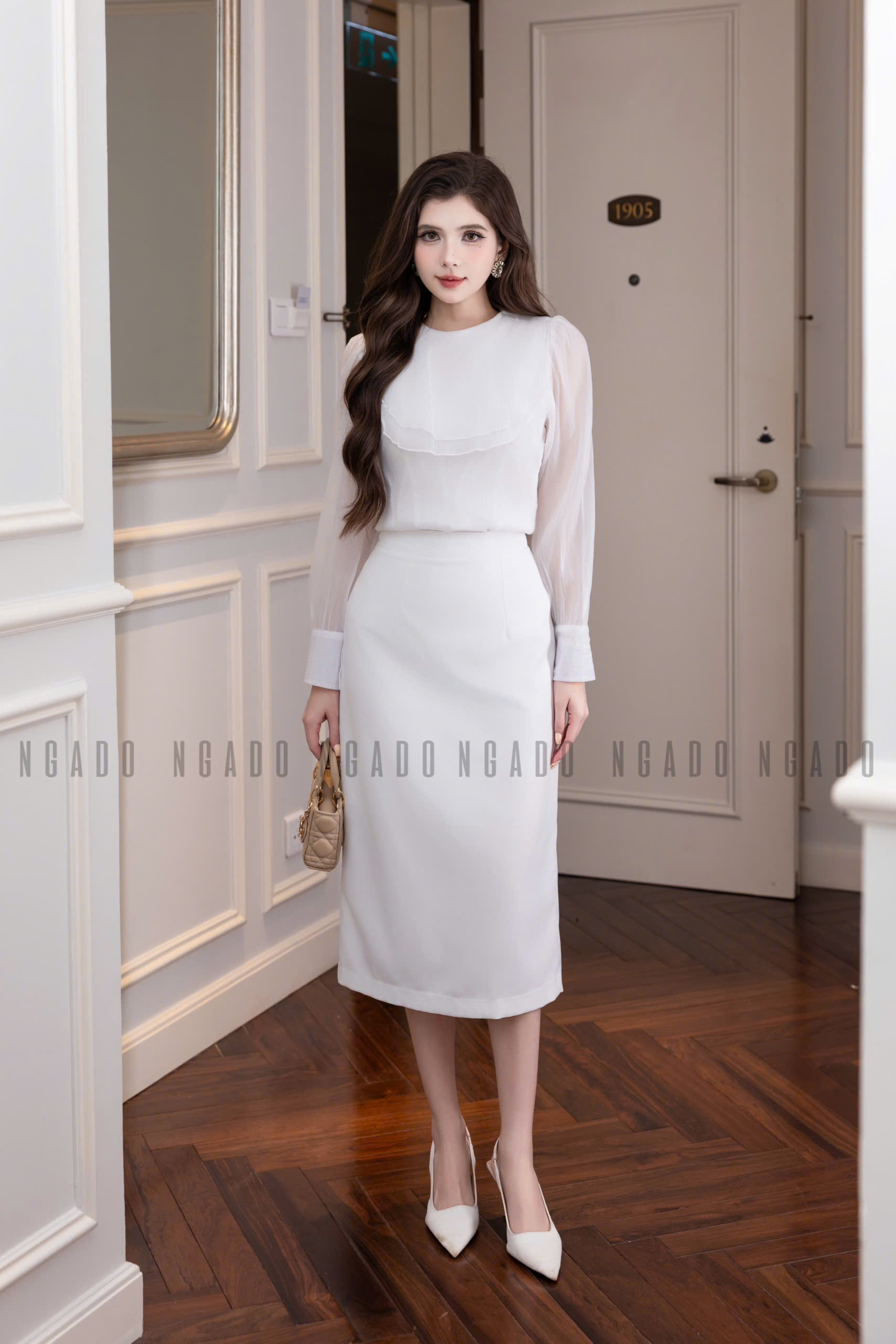 Tên sản phẩm: Set áo váy voan trắng bút chì