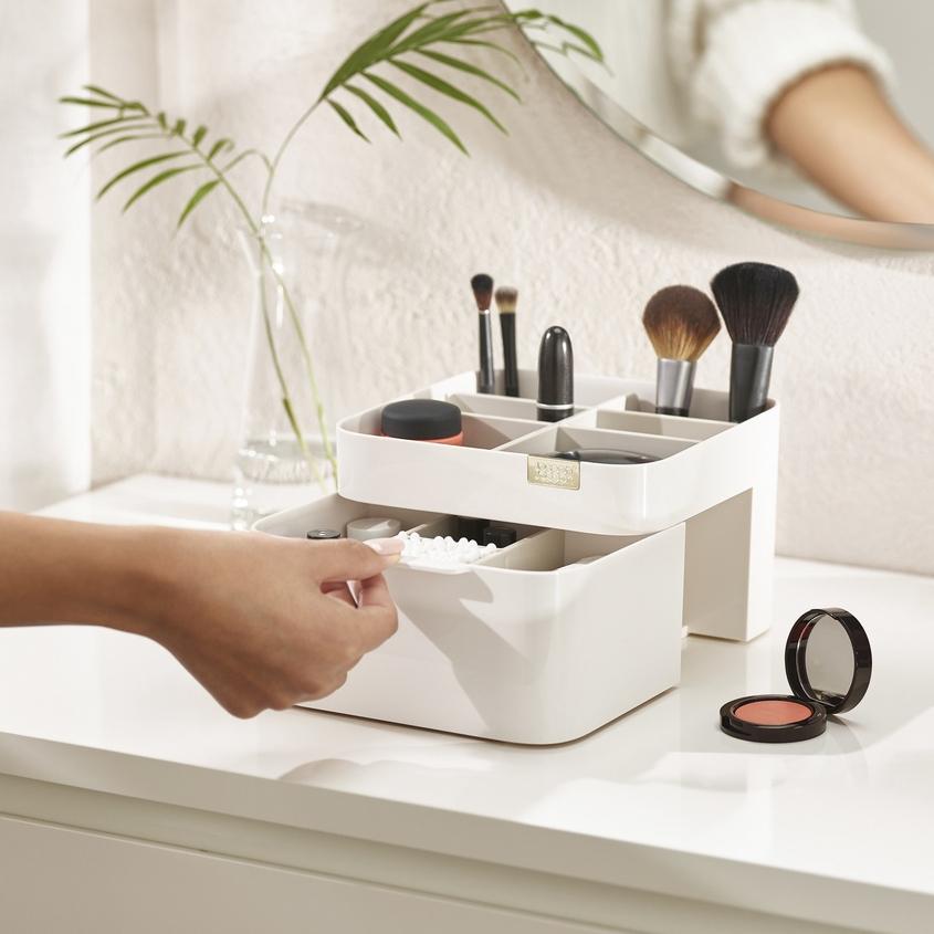 Làm cho thói quen trang điểm hàng ngày của bạn trở nên dễ dàng hơn.Bộ thiết bị phải có này tập hợp hai thiết kế sáng tạo từ dòng sản phẩm Viva của chúng tôi.Hộp đựng mỹ phẩm của chúng tôi có sự kết hợp của các ngăn sâu và nông để đựng các món đồ trang điểm như son môi, mascara và phấn mắt, cùng một ngăn kéo được bảo đảm bằng nam châm để đựng các phụ kiện như bông ngoáy tai và bọt biển.Để trang điểm khi đang di chuyển, chiếc gương nhỏ gọn 2 trong 1 của chúng tôi là lựa chọn hoàn hảo.Nó có hai gương - một gương có độ phóng đại gấp 3 lần - và một dây đeo silicon hoạt động như một vòng đeo ngón tay hoặc một không gian lưu trữ nhỏ cho bút chì kẻ mắt, mascara và son môi.Các chi tiết tốt hơnHộp đựng mỹ phẩm có ngăn kéo:Ngăn sâu để đựng cọ, mascara và chì kẻ mắtCác ngăn nông dành cho các vật dụng nhỏ như son dưỡng môi, phấn má hồng và phấn mắtNgăn kéo có khóa nam châm dành cho bông tẩy trang, bông tẩy trang và bông mút trang điểmChi tiết huy hiệu mạ cromTháo dỡ để làm sạch dễ dàngGương phóng đại nhỏ gọn 2 trong 1:Gương tiêu chuẩn cho chế độ xem toàn bộ khuôn mặt không bị biến dạngGương phóng đại 3x cho chi tiết tốt hơnNgón tay silicon mềm/dây đeo lưu trữDây đeo có thể đựng các vật dụng trang điểm nhỏ cần thiết như son môi hoặc mascaraĐóng cửa từ tính an toànChăm sóc & sử dụng:Lau sạch bằng vải ẩmGương - sử dụng một miếng vải sợi nhỏKhông sử dụng vải mài mòn hoặc chất đánh bóngThận trọng: Không kéo căng dây đeo silicon quá mứcKích thước:Hộp đựng mỹ phẩm: H12 x W18,5 x D19,5 cm (H4¾ x W7 x D7¾ inch)Gương nhỏ gọn : H8.5 x W7.5 x D1.5 cm (H3½ x W3 x D½ inch)