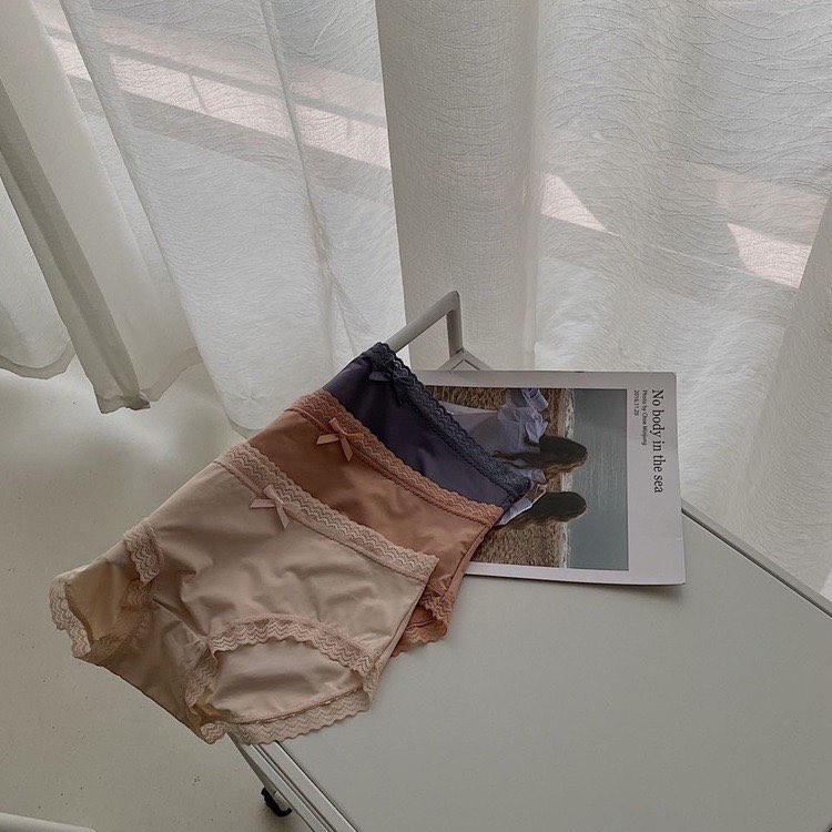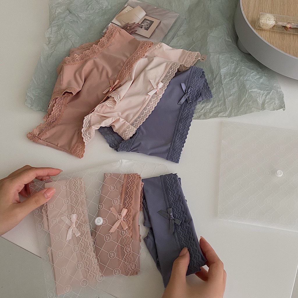 ✨Set túi ví 3 quần lót nữ su lạnh phối nơ viền ren
