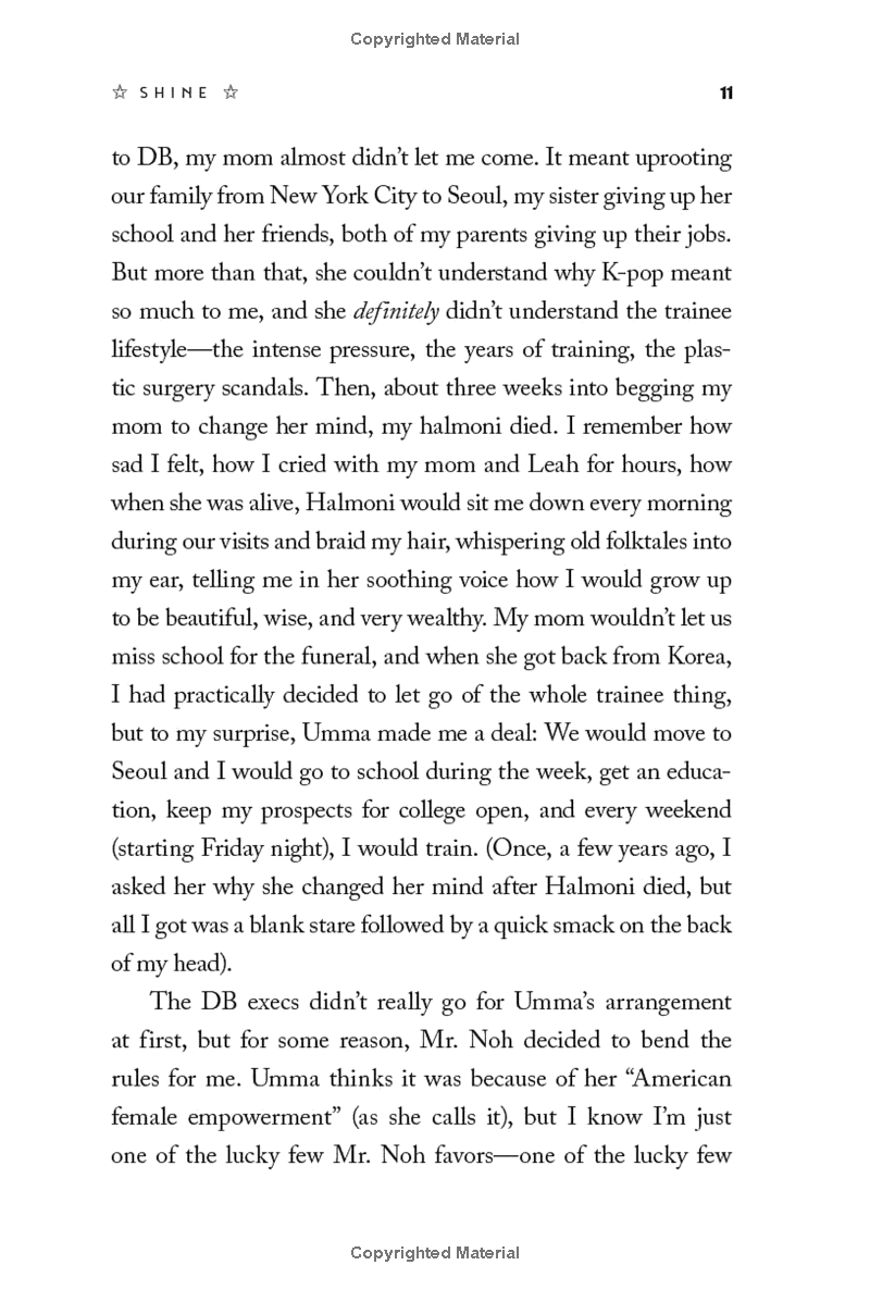 Not so much. As the dark scandals of an industry bent on controlling and commodifying beautiful girls begin to bubble up, Rachel wonders if she’s strong enough to be a winner, or if she’ll end up crushed… Especially when she begins to develop feelings for K-pop star and DB golden boy Jason Lee. It’s not just that he’s charming, sexy, and ridiculously talented. He’s also the first person who really understands how badly she wants her star to rise.
