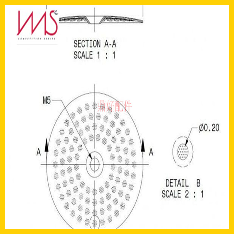 Thông số sản phẩm + Đường kính bên ngoài: 56.4mm + Đường kính lỗ trung tâm: 7mm + Chất liệu: Thép không gỉ AISI304 + Mã: MA 200 IM + Thương hiệu: IMS Mô tả