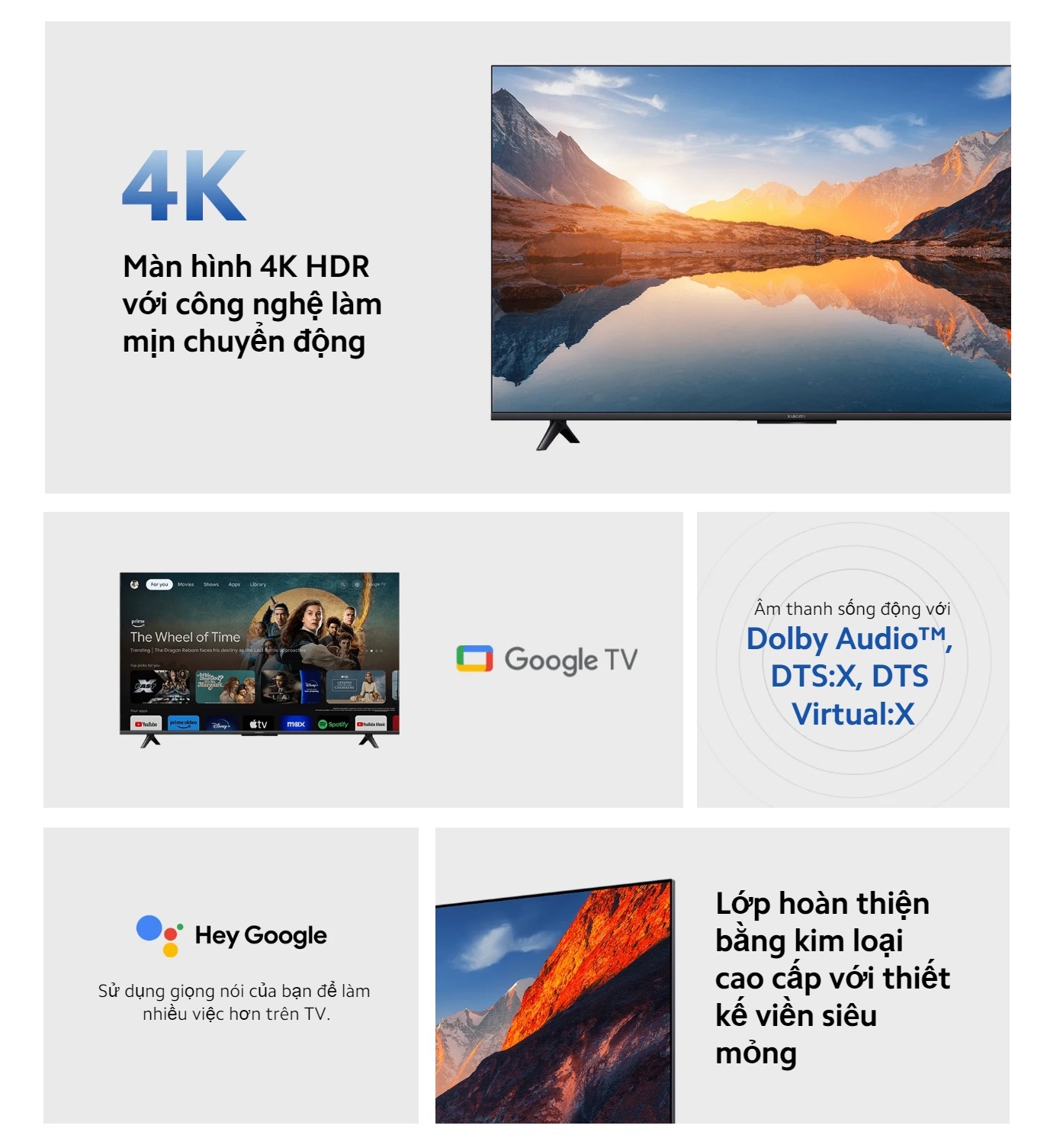 Tivi Xiaomi A43 FUD 2025 tinh tế, hiện đại với thiết kế không viền trải nghiệm hình ảnh không giới hạn, khung kim loại chắc chắn, bền đẹp theo thời gian. Trang bị màn hình 4K FUD 43 inch sắc nét, dải màu rộng kết hợp độ phân giải 3840 × 2160, góc nhìn 178°(H)/178°(V) mang đến hình ảnh chân thực. Công nghệ âm thanh Dolby Audio, DTS-X và DTS Virtual:X tạo nên âm thanh sống động, Google TV cung cấp kho giải trí khổng lồ. Điều khiển bằng giọng nói thông minh, Xiaomi A43 FUD 2025 hứa hẹn nâng tầm trải nghiệm cuộc sống, tận hưởng trọn vẹn bên gia đình.