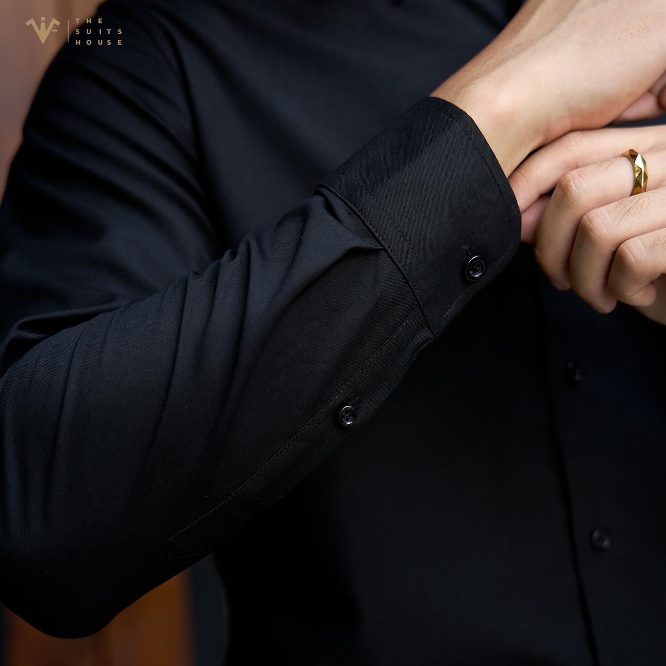 ✨[SMARTSUIT - THE SUITS HOUSE] Sơ mi cao cấp ĐEN TRƠN, KHUY HIỆN công sở, thanh lịch, Regularfit tôn dáng