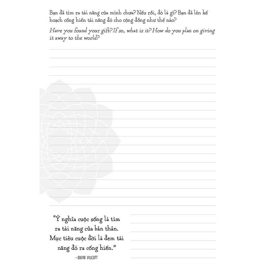 Du hành trong thế giới nội tâm là cuốn nhật kí viết lách bao gồm 200 câu hỏi giúp bạn soi chiếu nội tâm, khơi gợi suy ngẫm về bản thân và cuộc đời bạn đang vun đắp. Dưới mỗi câu hỏi là trích dẫn đúc kết chiêm nghiệm phần lớn đến từ các vĩ nhân.