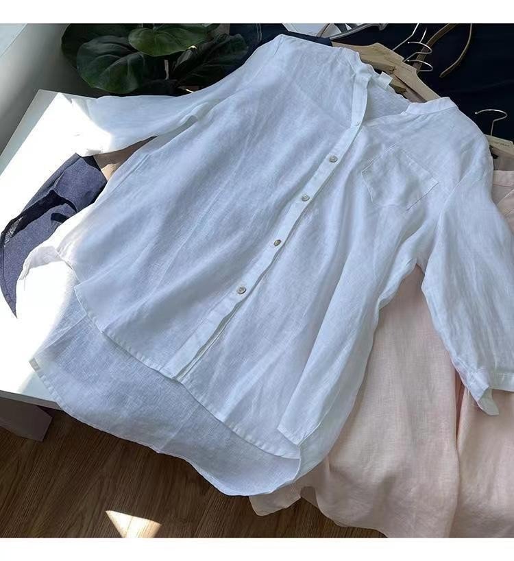Áo sơ mi nữ Linen tay dài, không túi LA MỘC - LM0122306 - Sơ mi trắng với thiết kế cơ bản và dễ mặc. Điểm nhấn là phần xẻ tay tạo có thể thả
