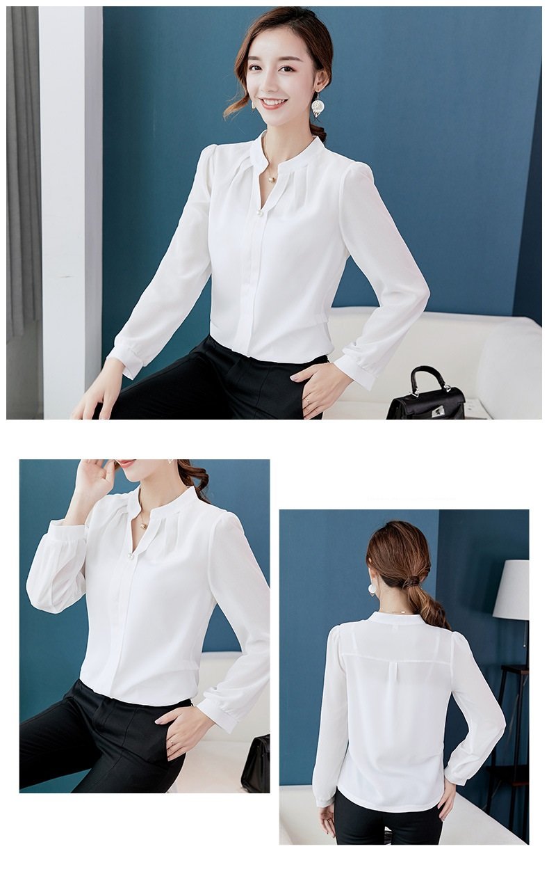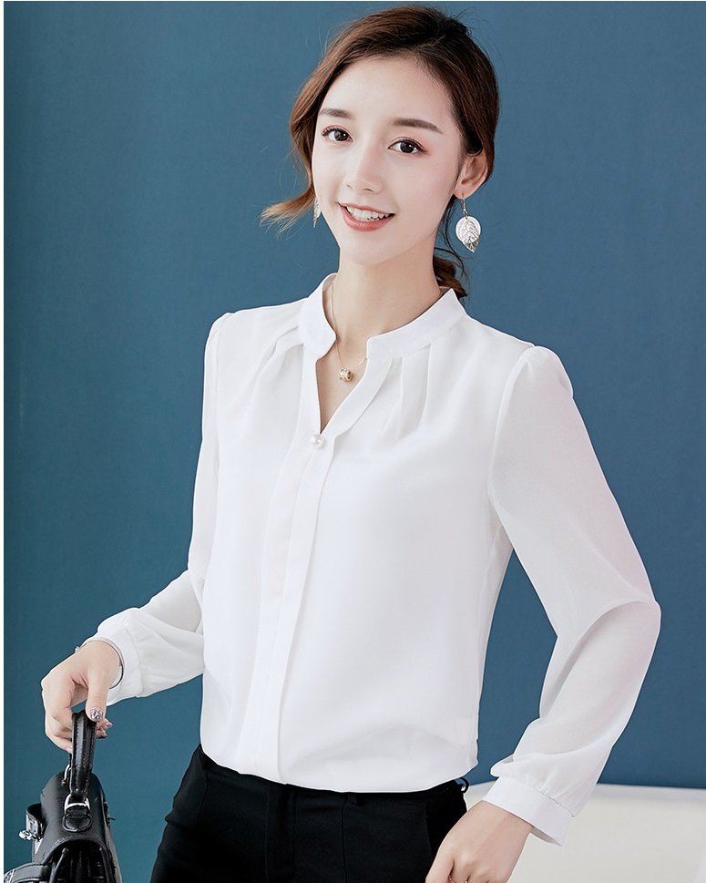 Kiểu dáng: áo sơ mi công sở cổ tim thanh lịch, phối nút duyên dáng, tay dài cài nút phong cách phù hợp công sở, công tác, đi dạy, đi học, đi tiệc Chất liệu: