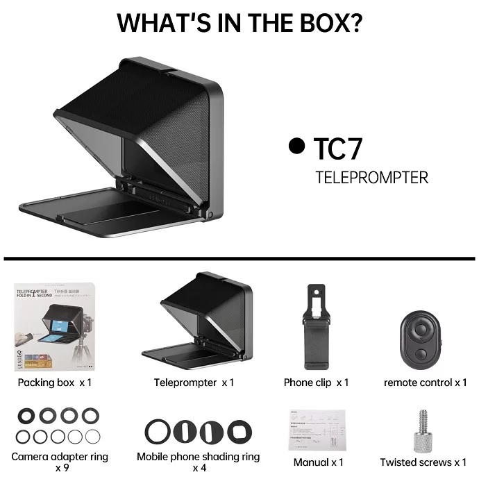 Khả năng tương thích rộng, teleprompter có thể phù hợp với tất cả các dòng điện thoại thông minh hoặc máy tính bảng và Máy Ảnh.