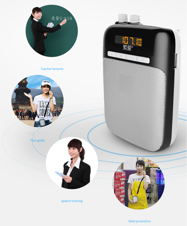 - Máy trợ giảng Shidu SD-S258 với thiết kế nhỏ gọn, công suất lớn 10W kết hợp hệ thống loa kép cho giọng nói trung thực, thời gian sử dụng lên đến 15 giờ phù hợp cho