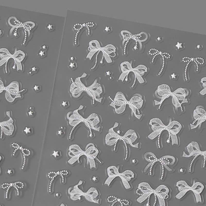 sticker lụa 5d nơ trắng #nailmi #phukiennail #trend #nghenail #nails