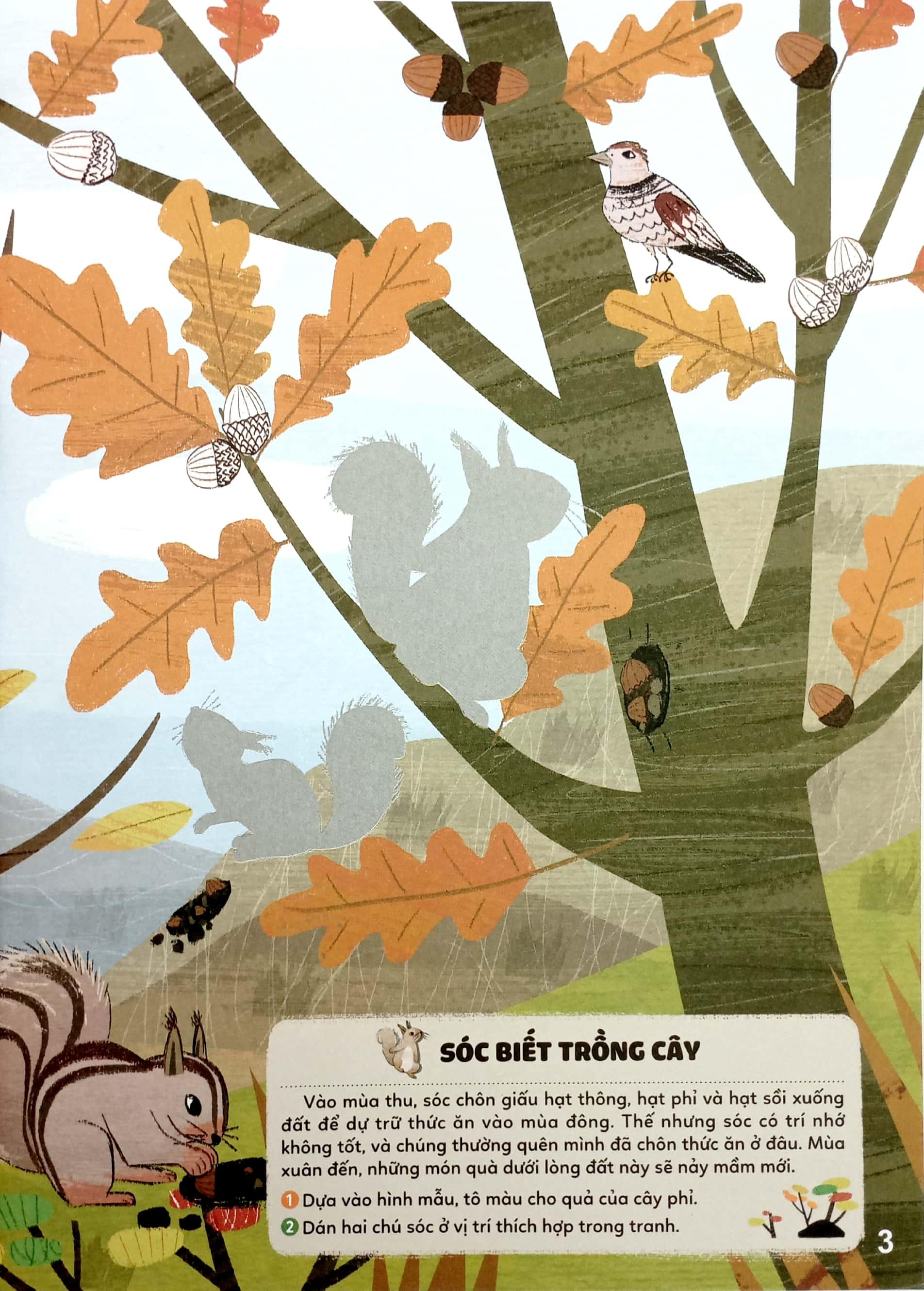 Hình ảnh các loài động vật sinh động và đáng yêu khiến các bé say mê thiên nhiên từ nhỏ. Cuốn sách gồm 300 hình dán cùng 100 bức tô màu giúp các bạn nhỏ vừa học vừa chơi, dễ dàng nhận biết. Từ đó rèn luyện khả năng quan sát, trí tưởng tượng, óc sáng tạo và khả năng thực hành. Với những câu đố vui, cha mẹ có thể thu hoạch kiến thức cùng các con.