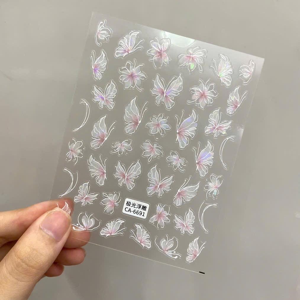 Sticker 5D Bướm Lụa Nổi Gắn Móng CA6993 Làm Nail, Miếng Dán Bướm Lụa 5D Nhiều Màu Trang Trí Hình Dán Móng Hàn Quốc Hiệu ứng 5D sống động: Miếng dán bướm lụa 5D với