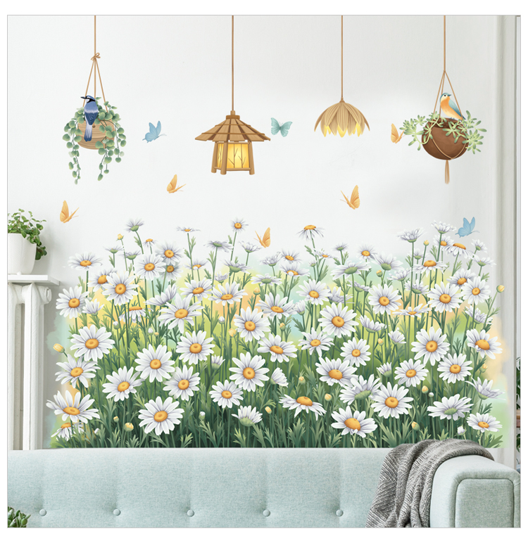 ✨Sticker Giấy Dán Tường Decal Dán tường Tranh Dán Tường Trang Trí Tường Mẫu Vườn Hoa Cúc Trắng ZDB-2593