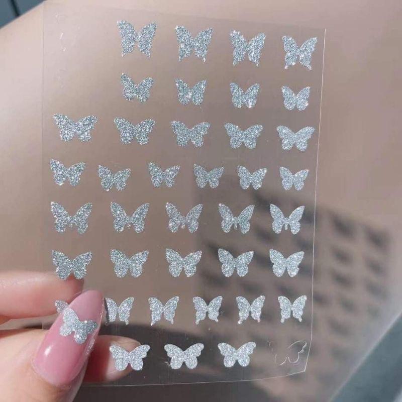 ✨Sticker Nail Nhũ Bạc Flash Kim Tuyến, Nhiều Mẫu Bướm Sao Lung Linh, Làm Nail Siêu Sáng, Tạo Điểm Nhấn, Dễ Sử Dụng