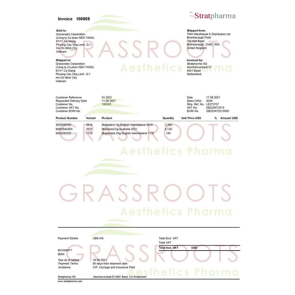 - Sau khi gel Strataderm khô, có thể phủ lên trên bằng kem chống nắng, mỹ phẩm, băng tạo áp lực hoặc bó bột.