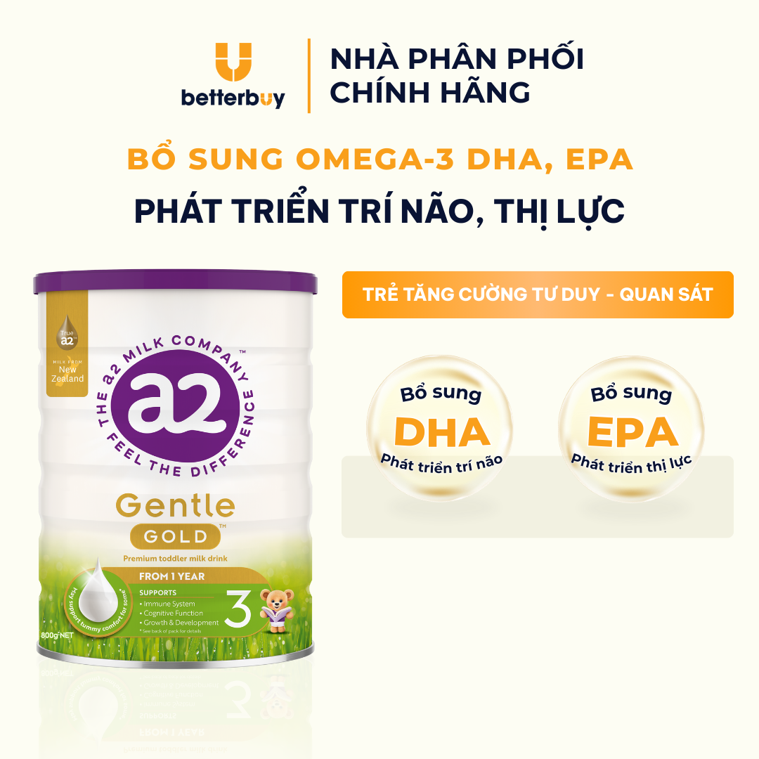 Sữa a2 Milk a2 Gentle Gold Số 3 Lon 800gGiới thiệu chungĐẠI LÝ PHÂN PHỐI CHÍNH HÃNG A2 MILK - ĐẦY ĐỦ QR VÀ TEM PHỤ, CAM KẾT 1 ĐỔI 1 NẾU PHÁT HIỆN HÀNG GIẢ- - - - - -a2 Platinum Premium - Sữa công thứ...
