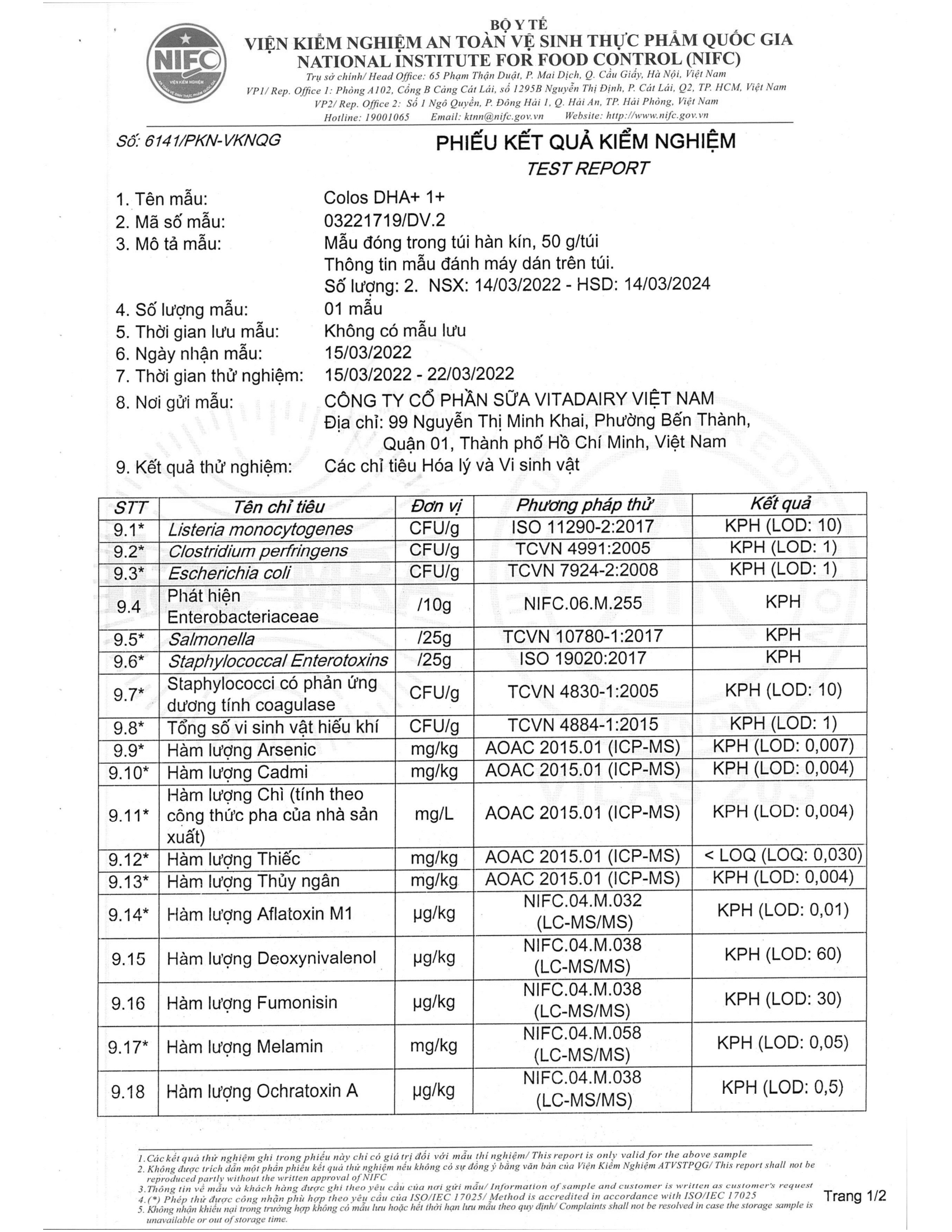 ✨Sữa bột Colos DHA+ 1+ / hộp 800g