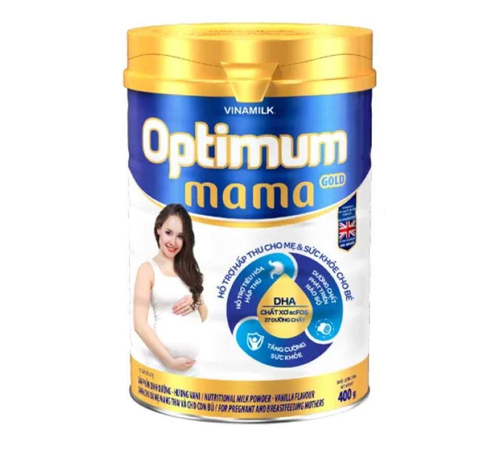 Tên sản phẩm: Sữa bột Vinamilk Optimum Mama Gold- Hộp thiếc 400g Optimum Mama Gold với hương vị Vani thơm ngon, thay thế bữa ăn phụ, bổ sung DHA, Canxi, Sắt cùng vitamin và khoáng chất thiết yếu, bổ sung cho