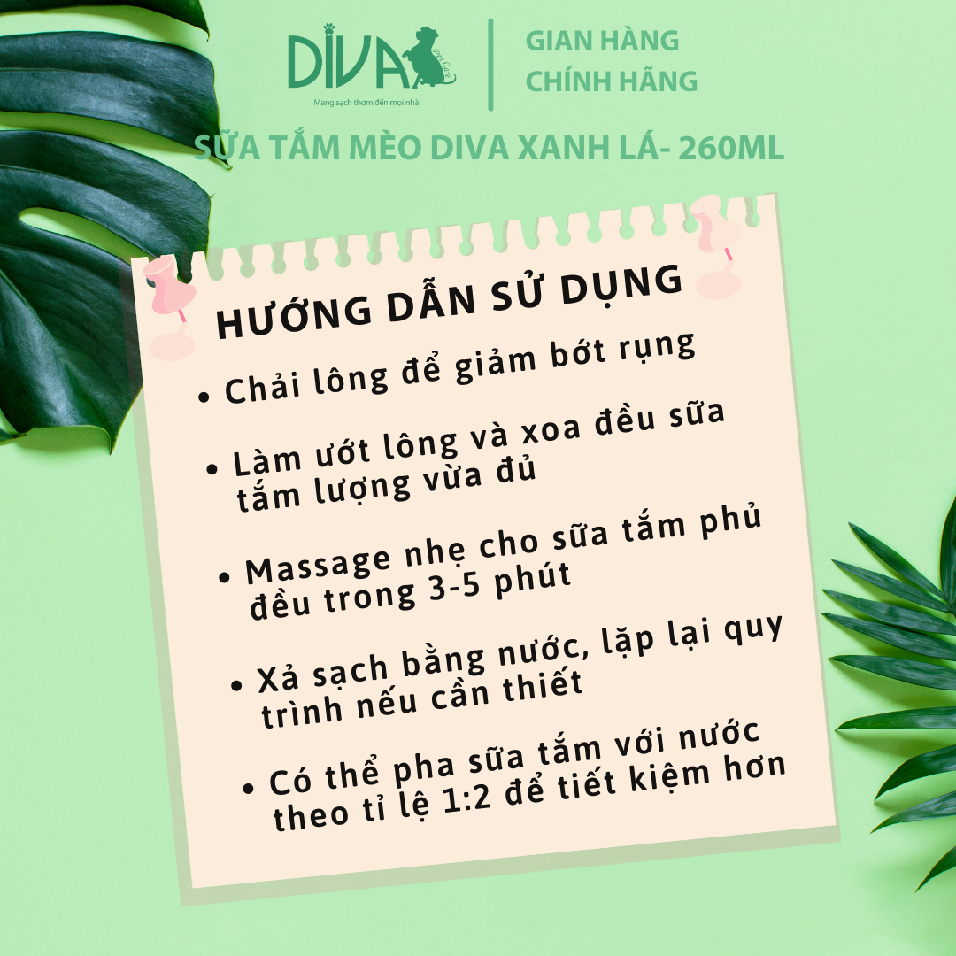 ✨SỮA TẮM CHO MÈO DIVA XANH LÁ 260ML (DIVA FORMULA 6)